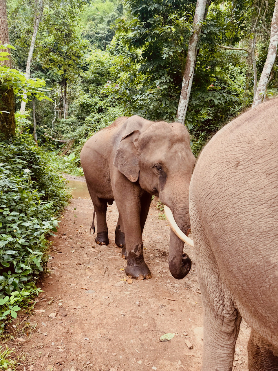 Sonia and I had a lovely luncheon next to the creek: local fruit, handmade pastries, satay, and other snacks while we dried off. Our pachydermic friends sauntered over and enjoyed our leftover vegetarian delights—a reward for taking care of two gringo American women on an adventure to see elephants and be an elephant caretaker for the day. And what a day it was. Would I recommend the experience?? 10/10 heck yes!!!